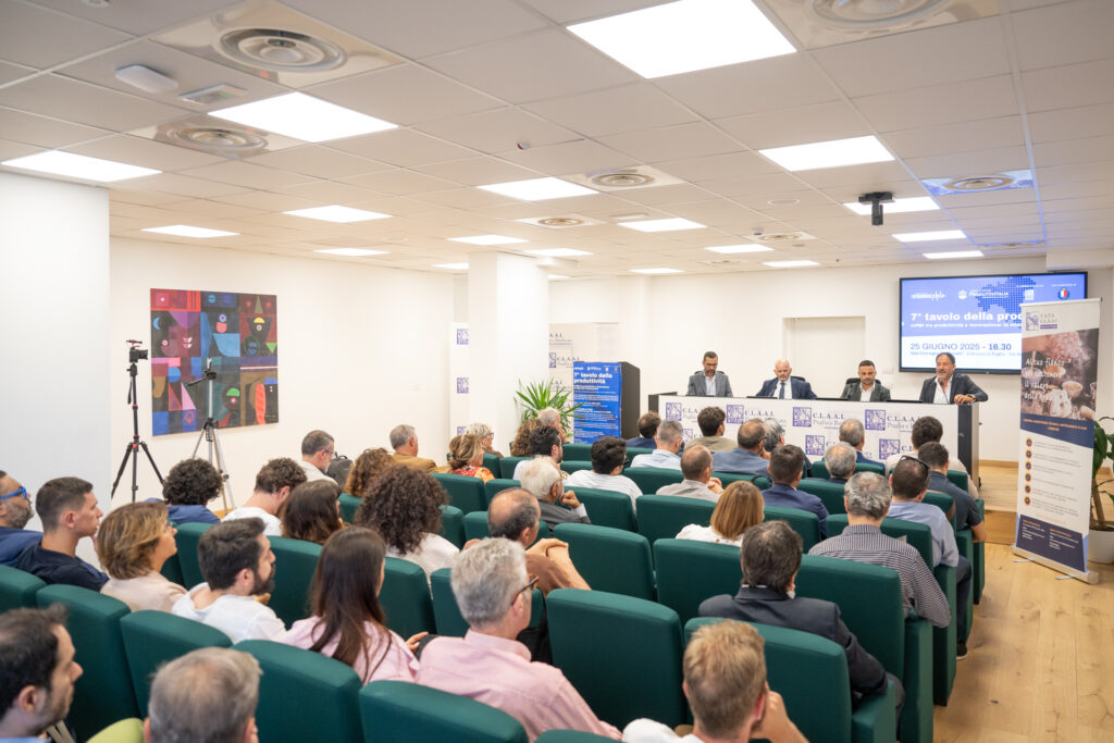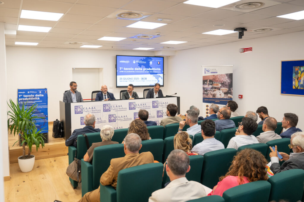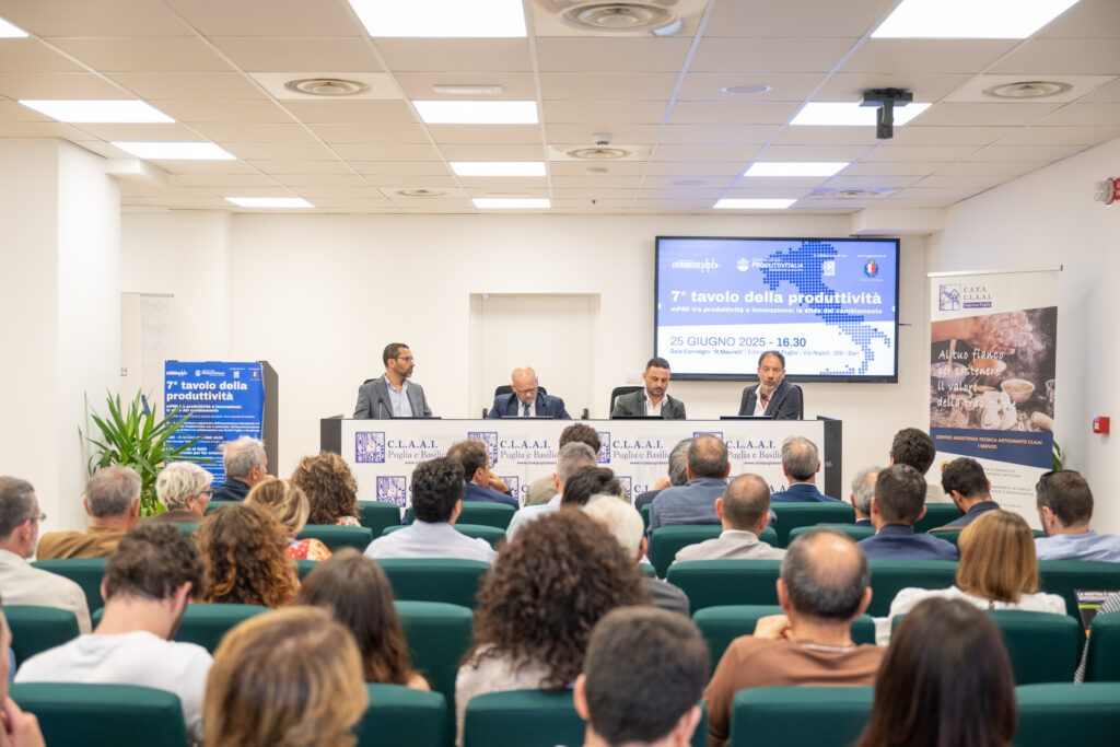 Si è svolto mercoledì 25 giugno presso la Sala Convegni “R.Maurelli” il 7° Tavolo della Produttività , l’iniziativa itinerante promossa dall’ APS Entrobordo e dal Centro Studi ProduttivItalia , in collaborazione con CLAAI Puglia e Basilicata e con il patrocinio del Comune di Bari . Un evento partecipazione e stimolante, che ha messo al centro dell’attenzione temi cruciali per il futuro del tessuto imprenditoriale locale quali produttività, cultura del lavoro e innovazione, ponendo inoltre l’accento sulle importanti ricadute che queste tematiche hanno anche in termini sociali .